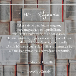 Olvasd el: Préd. 1:12-18 IMÁK: Préd. 1:17-18 Salamon volt a legbölcsebb király a földön. Úgy döntött bölcsességet kér ajándékként Istentől, pedig akármi más választhatott volna. Követte a tanítást, bárhol is kellett kutatnia érte. Azonban minél többet tanult Salamon annál nagyobb ürességet érzett. Minél több tudást szerzett annál nagyobb bánatot tapasztalt . Az e világ bölcsesége […]