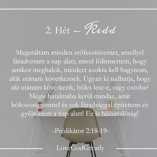Olvasd: Préd. 2:18-19 IMÁK: Préd. 2:18-19 Salamon elkezdte megutálni az erőfeszítéseit, a nyereségeit és eredményeit, mert a legvégén nem tudta magával vinni a sírba. Mindent, amit elért a földön, oda kellett adjon valakinek, aki utána következett. Nem volt semmi befolyása azokra, akik örökölték a vagyonát, bármit tehettek vele. Salamon önelkényeztetése és szomorúsága miatt elfelejtette, hogy Isten szuverén […]