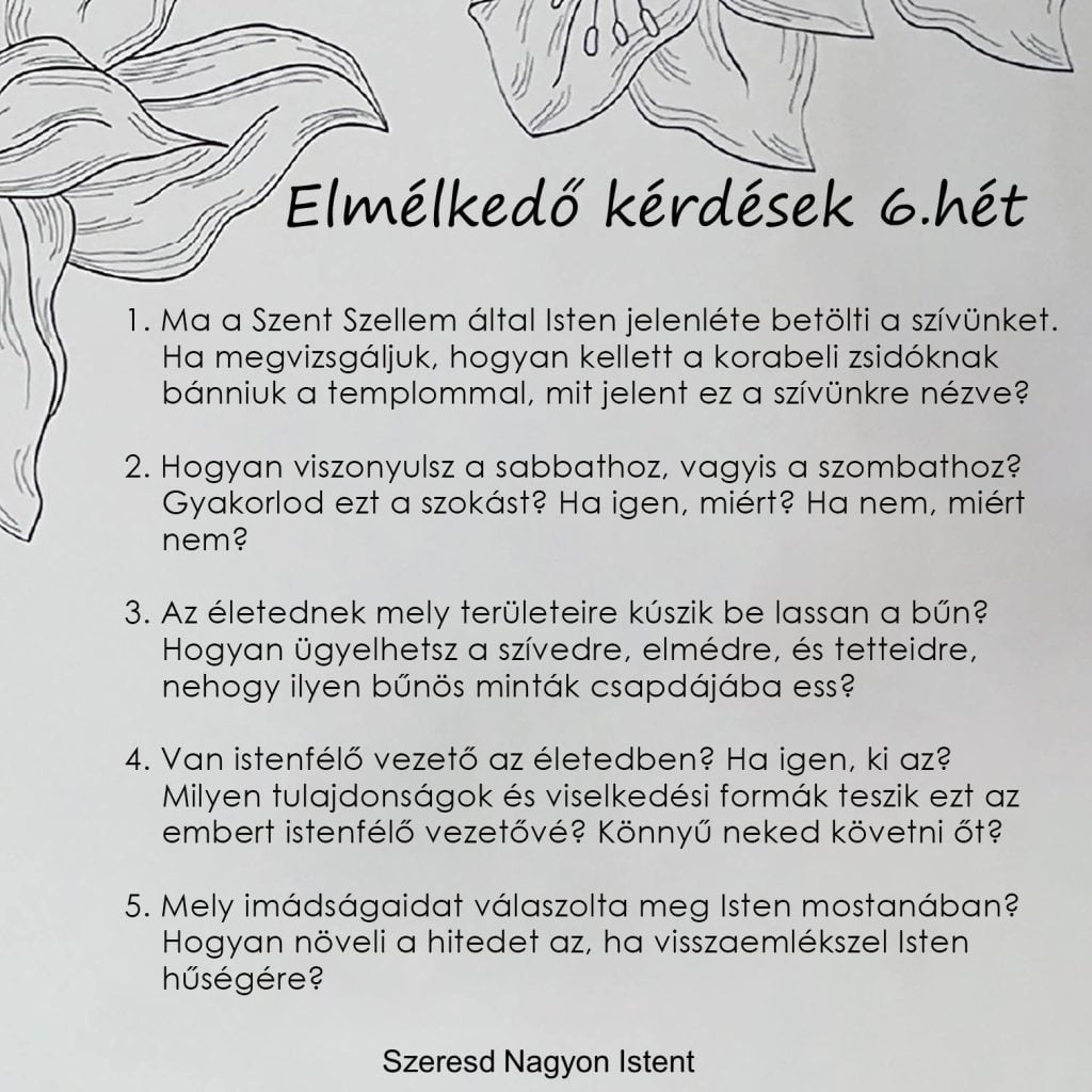 5. heti kihívás: Ezen a héten olvasmányunkban látni fogjuk, hogy Isten népe nagy ünnepléssel köszöni meg az újjáépítés munkáját, amelyet Ő végzett és végez. Mit tesz Isten most az életedben, amit ünnepelhetsz? Függetlenül attól, hogy a munka befejeződött-e, vagy sem, ezen a héten szánj időt az ünneplésre és az örömre, hirdesd Isten hűségét, miközben Ő […]
