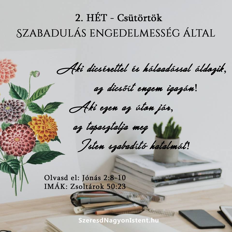 Szabadulás engedelmesség által Olvasd el: Jónás 2:8-10 IMÁK: Zsoltárok 50:23 A szabadulás akkor jött el Jónás életében, amikor megértette, hogy a megpróbáltatás az engedelmességről szólt. Az engedelmesség olyan könnyű és mégis nehéz! Nem kell, hogy megértsük Isten terveit. Nem is kell, hogy tetsszen nekünk. Csak engedelmeskednünk kell, hogy megtegyünk mindent, amit Isten kér tőlünk. Néha […]