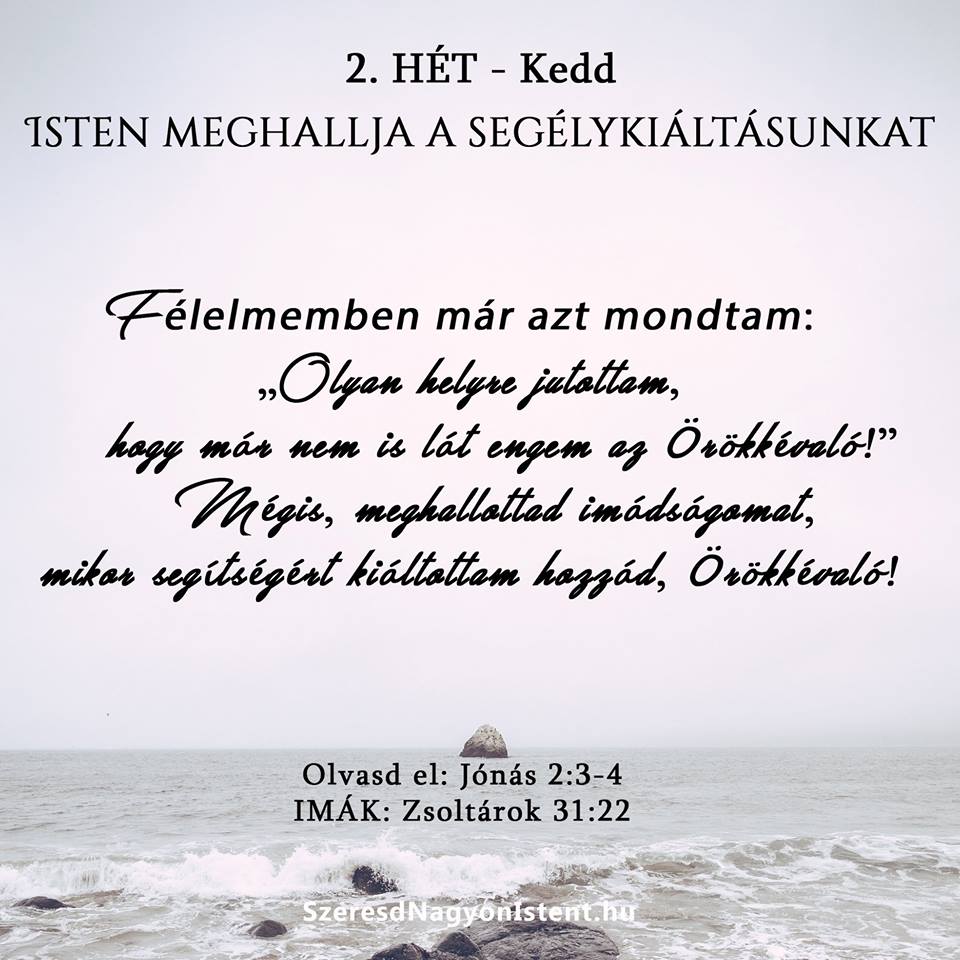 Isten meghallja a segélykiáltásunkat Olvasd el: Jónás 2:3-4 IMÁK: Zsoltárok 31:22 Jónás a mély tenger szívében volt, víz és hatalmas hullámok vették körül. Kétségbeesetten a sötétben azon gondolkozott, hogy vajon Isten vele van-e még. Segítségre volt szüksége és nem fordulhatott máshoz, csak Istenhez. Az volt az első gondolata a tenger közepén, hogy kiesett Isten látóteréből. […]