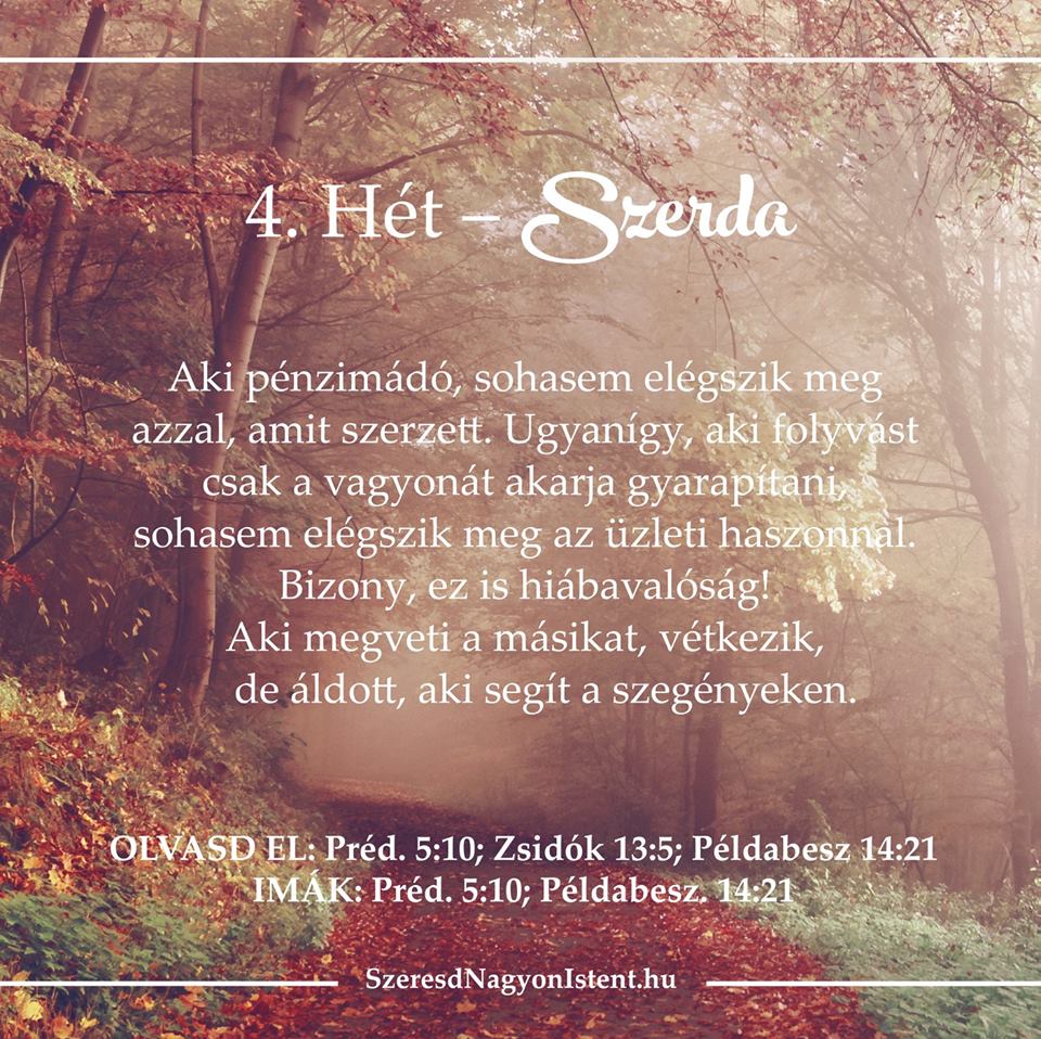 „Aki pénzimádó, sohasem elégszik meg azzal, amit szerzett. Ugyanígy, aki folyvást csak a vagyonát akarja gyarapítani, sohasem elégszik meg az üzleti haszonnal. Bizony, ez is hiábavalóság!” (Prédikátor 5:10) “Tartsátok távol magatoktól a pénz utáni vágyakozást, és elégedjetek meg azzal, amitek van! Mert Isten azt mondta: „Sohasem hagylak cserben, sem nem hagylak magadra.” (Zsidók 13:5) „Aki […]
