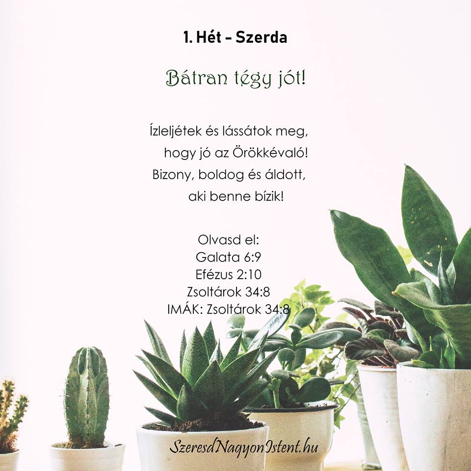 Bátran tégy jót Olvasd el: Galata 6:9, Efézus 2:10, Zsoltárok 34:8 IMÁK: Zsoltárok 34:8 Amikor valamilyen „menedékről” olvasunk, akkor én egy olyan helyet képzelek magam elé, amelynek van teteje: egy fedezéket vagy búvóhelyet, amely megvéd a vihartól. Ez egy csodálatos kép arról, hogy mit jelenthet Isten számunkra: biztos pontot, védelmezőt, fedezéket. Ebben a versben azonban […]