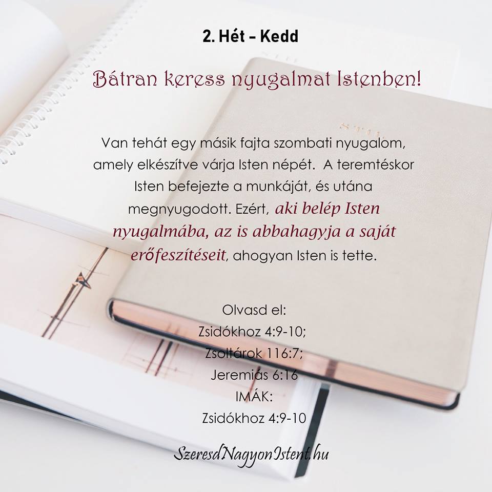 Bátran keress nyugalmat Istenben Olvasd el: Zsidókhoz 4:9-10; Zsoltárok 116:7; Jeremiás 6:16 IMÁK: Zsidókhoz 4:9-10 Volt valaha olyan napod, amikor valami csoda folytán volt néhány szabad perced, semmilyen sürgős dolog nem volt a tennivaló listádon és lehetőséged nyílt, hogy ledőlj egy kicsit? Van ebben valami igazán édes dolog, amikor megengedjük magunknak, hogy szundítsunk egyet, mint […]
