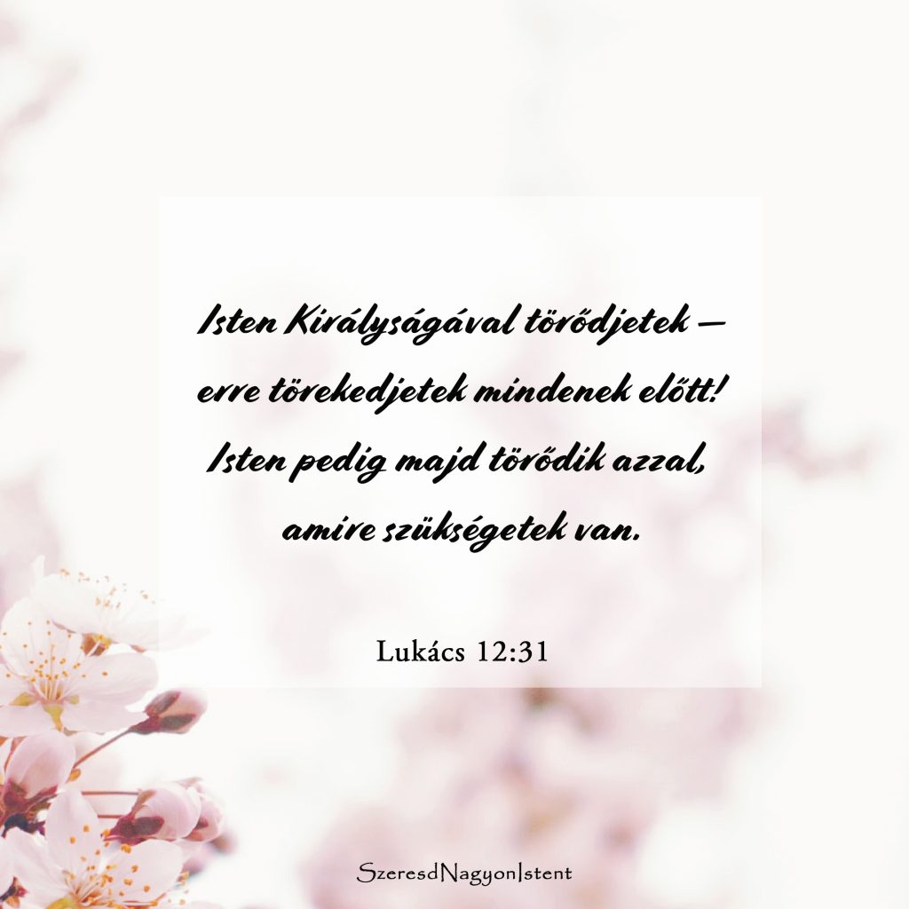 Andrea Howey Lukács 12:29-32 verseiben Jézus azt mondta a tanítványainak: „Ne aggódjatok hát amiatt, hogy lesz-e mit ennetek, vagy innotok! Azok törtetnek ilyen dolgok után, akik nem ismerik Istent. Mennyei Atyátok azonban jól tudja, hogy mindezekre szükségetek van. Isten Királyságával törődjetek — erre törekedjetek mindenek előtt! Isten pedig majd törődik azzal, amire szükségetek van. Ne […]