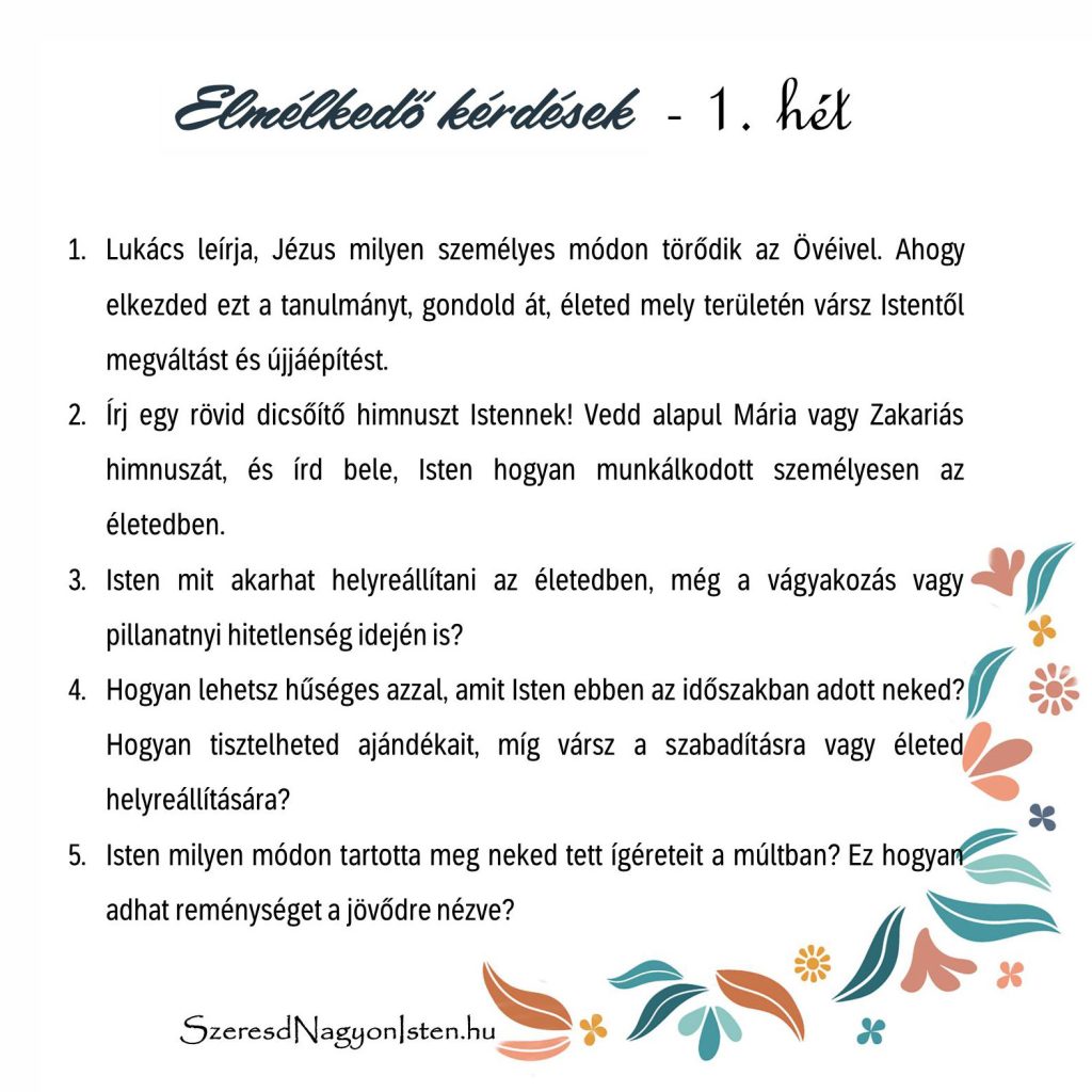Velünk az Isten! – Lukács – 1. heti elmélkedő kérdések és összefoglaló