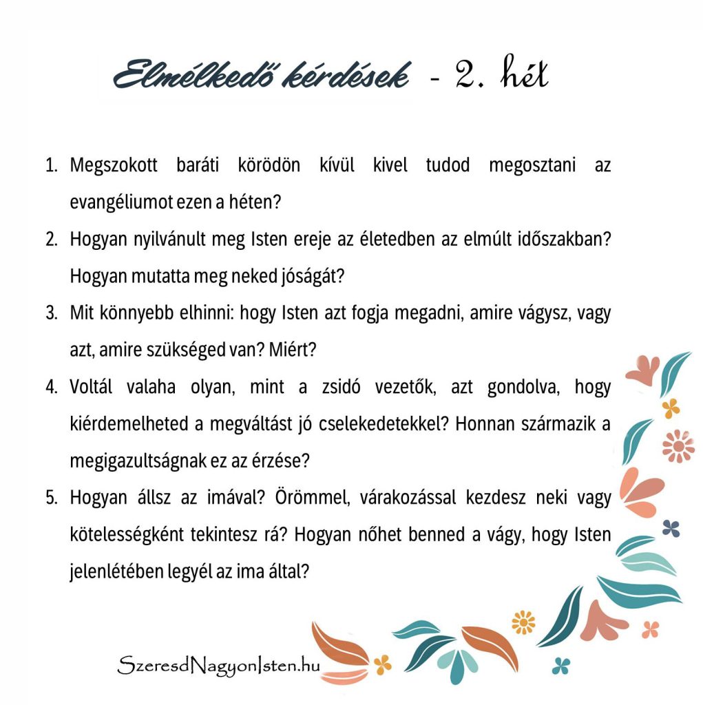 Velünk az Isten! – Lukács – 2. heti elmélkedő kérdések és összefoglaló