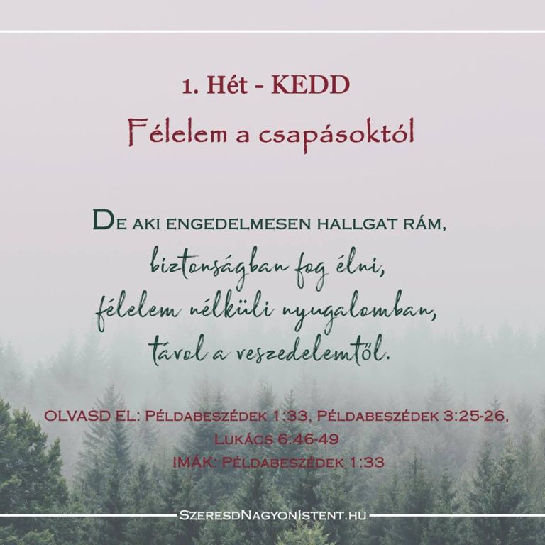 Mennyei Atyám, köszönöm, hogy elküldted Krisztust, akire a hitemet alapozhatom. Dicsőítelek azért, mert Te vagy a menedékem. Segíts naponta építeni a hitemet, még akkor is, amikor nehéz nem a körülményeimre, hanem Rád néznem. Segíts csendben lennem, hogy meghalljam a hangodat. Jézus nevében, Ámen.
