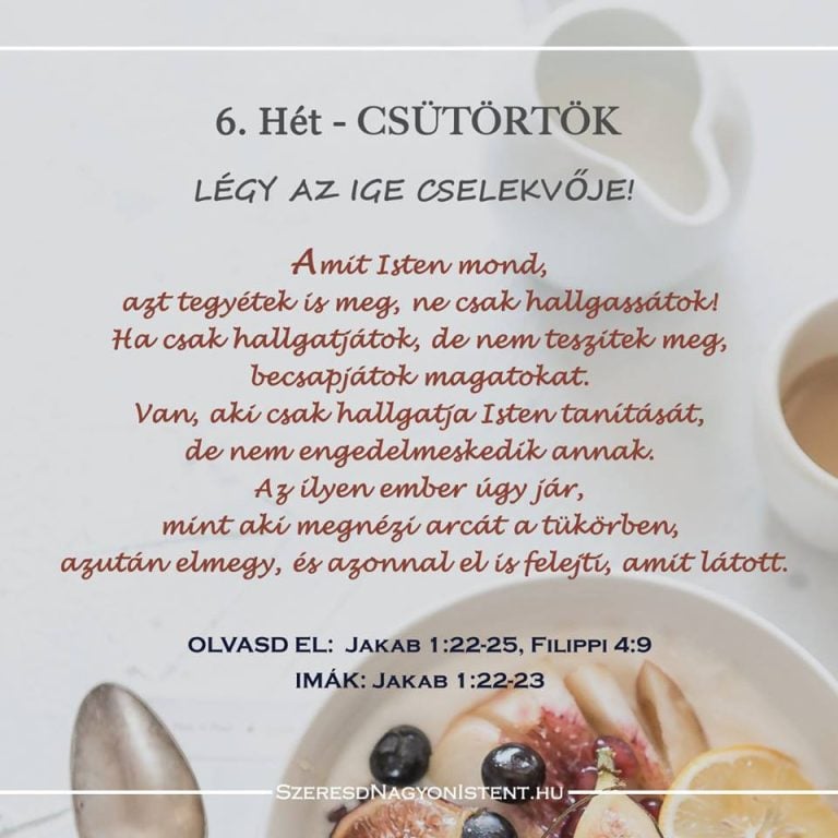 A Biblia arról is beszél, milyen fontos, hogy a hitünk cselekedetekben is megnyilvánuljon. Amennyiben csak hallgatói vagyunk Isten Igéjének, de cselekvői nem, az életünk semmiben sem fog megváltozni. Ha viszont gyakoroljuk is a tanultakat, meg fogjuk tapasztalni Isten áldását. Növekedni fogunk Krisztussal való kapcsolatunkban és változni fog a felfogásunk. Elkezdjük megtapasztalni a békességet.