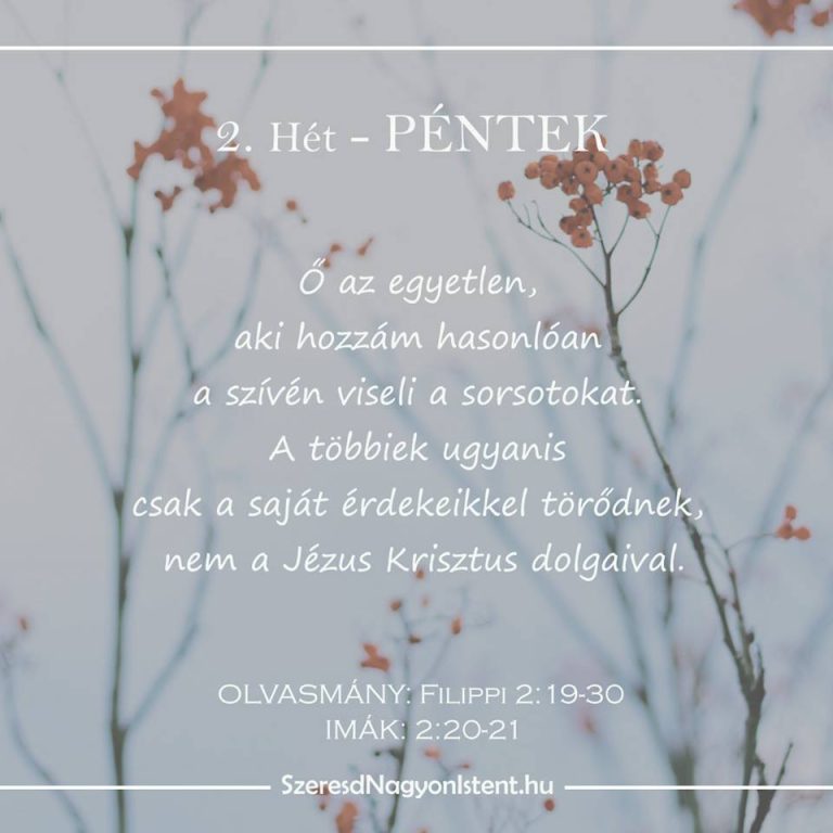 Mindannyian elfoglalt életet élünk, tele tennivalók listáival, emlékeztetőkkel és találkozókkal. Azonban a sok tennivaló közepette hajlamosak vagyunk megfeledkezni arról, hogy a mi igazi feladatunk az, hogy ezen a Földön megdicsőítsük Istent minden egyes nap, amelyet Ő adott nekünk. Timóteus óriási bátorítás volt Pál számára, mert ahelyett, hogy a saját javát kereste volna, Timóteus az Úr dolgaival törődött. Micsoda hatalmas erejű kijelentés ez, amit Pál Timóteusról ír! Bárcsak mi is olyan életet élnénk, mint Timóteus: olyan életet, amelyet teljesen az Úrnak adunk át az Ő dicsőségére!