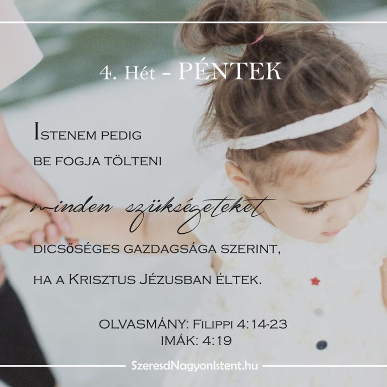 Újra és újra emlékeztet minket az Ige, hogy Krisztussal való kapcsolatunk partnerkapcsolat. Amint hitben kilépünk, hogy életünkre szóló elhívását kövessük, Ő is mellénk áll és gondoskodik mindarról, amire éppen szükségünk van, legyen az az Ő ereje, bölcsessége, vagy a napi szükségeink. Soha ne felejtsd el, hogy egy csodálatos, szerető Atyát szolgálsz, aki a Fia Jézus által már betöltötte a legnagyobb szükségedet. Hűséges Atyánk minden útja tökéletes és alig várja, hogy segíthessen neked. Vesd belé a bizalmadat, mert Ő méltó rá. Amikor a szükségeidet mind Isten lábai elé teszed és bízol benne, hogy Ő gondoskodni fog, akkor egészen biztosan meglátod majd nagyságát és egyre világosabbá válik munkája az életedben.
