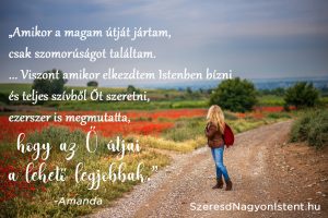 Amikor a magam útját jártam, csak szomorúságot találtam. Ebben már volt tapasztalatom. Viszont amikor elkezdtem Istenben bízni és teljes szívből Őt szeretni, ezerszer is megmutatta, hogy az Ő útjai a lehető legjobbak.