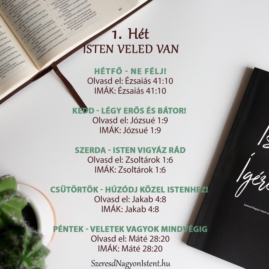 Ezen a héten minden nap olvasd el Ézsaiás könyvének 40. és 41. részét, majd szánj rá időt és jegyezz le öt konkrét esetet, mely Isten hűségét bizonyítja az életedben. Amint ismételten Isten erejét szemléled és visszaemlékezel az Ő hűségére, fordulj felé hálaadással és dicsőítsd Őt Önmagáért és mindenért amit Ő tett!