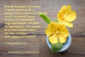 Nézd meg a 2Thesszalonika 2:13-t! Téged, kedvesem, nemcsak, hogy szeret az Isten, hanem ki is választott.