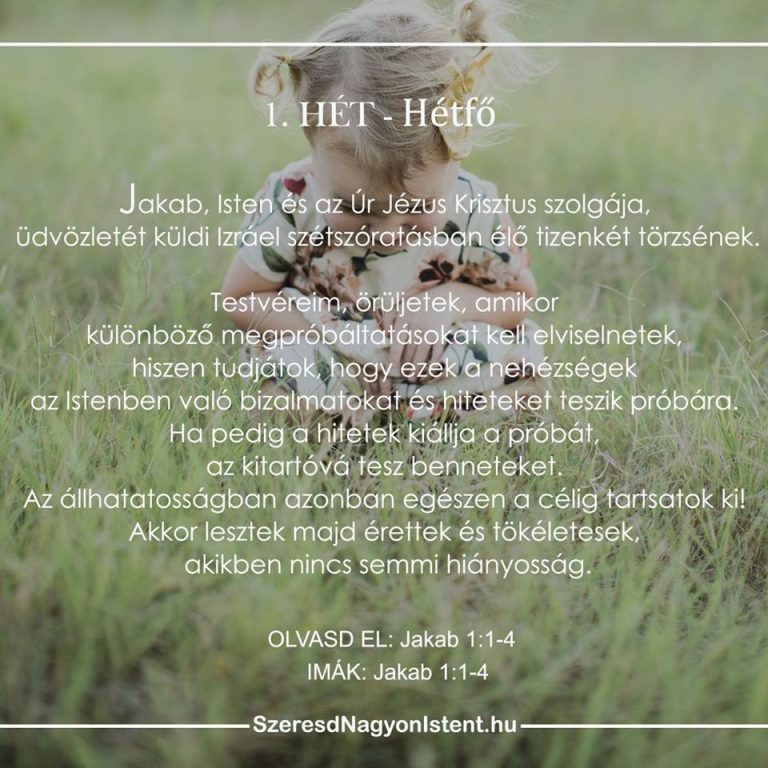 Atya Isten, Te vagy az egyetlen, aki tökéletes hűségeddel minden jó munkát bevégzel, melyet elkezdtél. Köszönöm, Uram, a vágyadat, hogy teljesebbé és egyre inkább hozzád hasonlóvá szeretnél formálni engem. Segíts, hogy elfogadjam, és alávessem magam a Te módszereidnek, melyekkel az érettséget munkálod az életemben. Fedd fel magad előttem a próbáim során, Uram, hogy kitartsak Benned bízva. Jézus nevében. Ámen.