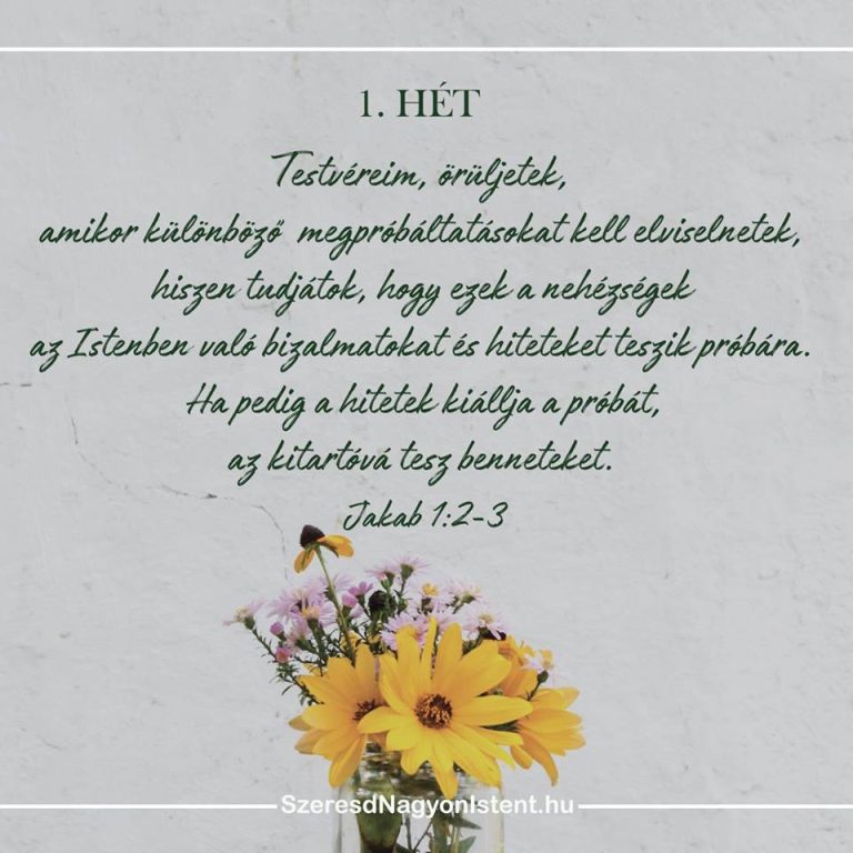 Ezen a héten írd le a Jakab tanulmány naplódba, vagy egy másik papírra, a tervet, mely szerint ezután a megpróbáltatásokat kezelni fogod. Ahelyett, hogy csak lereagálnánk a helyzeteket, kezdjük azzal az évet, hogy egy átgondolt cselekvési tervvel elejébe megyünk és felkészülünk a próbákra, melyekkel szembe fogunk kerülni.
