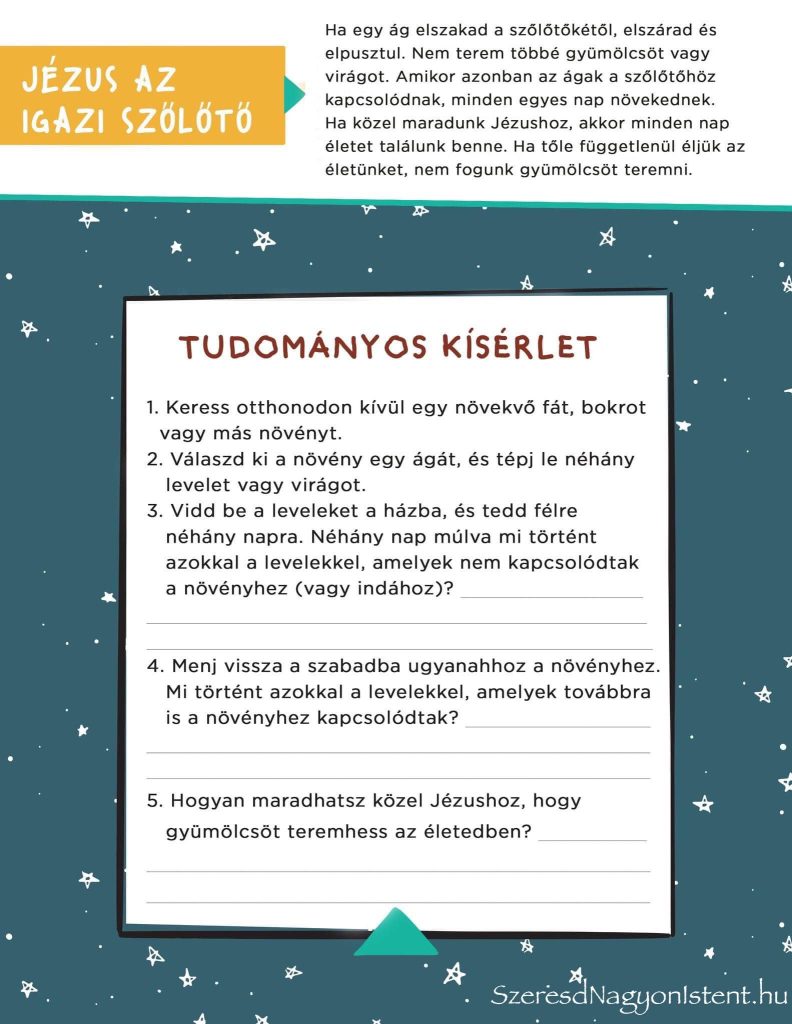Beszélgessetek erről gyermekeitekkel, hogy ugyanez történik velünk, ha nem Jézussal éljük az életünket.