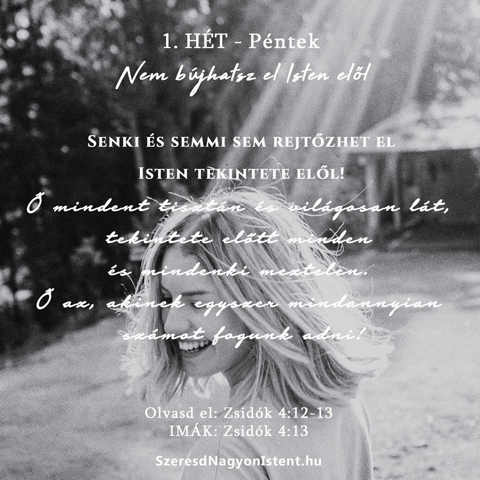 Drága Atyám, köszönöm a Te élő és ható Igédet, ami bevilágít a szívem legsötétebb zugaiba is. Segíts, hogy ne felejtsem el, hogy előled semmit nem rejthetek el, sem a szívemben, sem a lelkemben, sem az elmémben. Ámen.