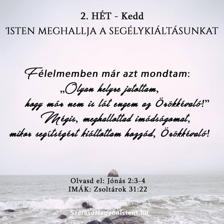 Az volt az első gondolata a tenger közepén, hogy kiesett Isten látóteréből. Néha mi is így érezzük magunkat, ugye? Vannak helyzetek és nehézségek, mikor azt gondoljuk Isten elhagyott minket. Elfelejtjük, hogy Isten mindig meg fog hallgatni minket, mikor hozzá kiáltunk segítségért. Mindig. És ezt tette Jónás is. Az Úrhoz kiáltott, felismerte, hogy szüksége van Rá.
