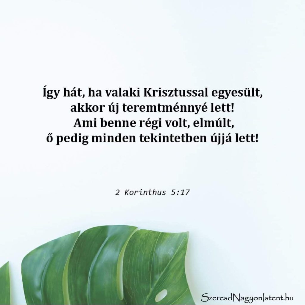 Krisztusban új teremtmény vagy! Ezen a héten jegyezd fel, hogy Isten miként újítja meg az életedet és tesz téged új teremtménnyé! Kérd, hogy fedje fel a benned elvégzett munkát, miközben ezen a héten is őt keresed!