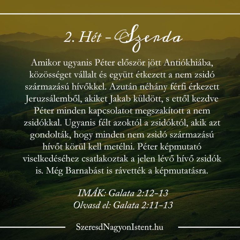 Habár ortodox zsidóként nevelték, az Apostolok cselekedetei 15. részében azt látjuk, hogy kiáll a pogány származású keresztényekért, amikor azt mondja, hogy mind a zsidók, mind pedig a pogányok hit által menekülnek meg, nem pedig a tetteik alapján. Ma a Galatákhoz írt levél 2. részében mégis azt látjuk, hogy Péter tetteit a félelem irányítja. Fél, hogy mit fog gondolni a többi zsidó, ha meglátják, hogy együtt vacsorázik a pogányokkal.