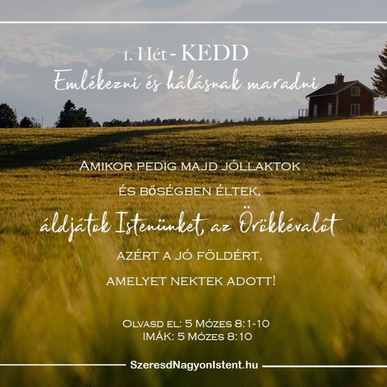 Istenem, köszönöm, hogy hűségesen vezetsz minket, és erőt adsz nekünk az élethez! Annyira meg vagyunk áldva, hogy Társunk vagy a mindennapokban! Segíts, hogy életünk minden egyes napján követhessünk Téged! Ámen.