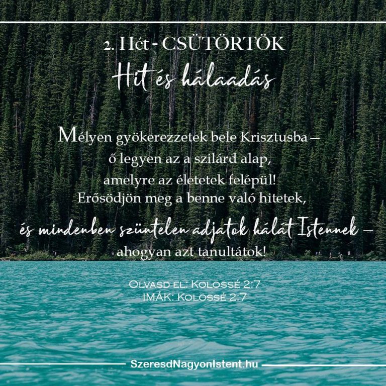 Uram, köszönöm, hogy építed a hitünket és természetfeletti erőt adsz, hogy szembe tudjunk nézni a mai nappal. Hálás szívvel kapaszkodunk beléd. Segíts, hogy igazságod szilárd alapja legyen az életünknek. Ámen