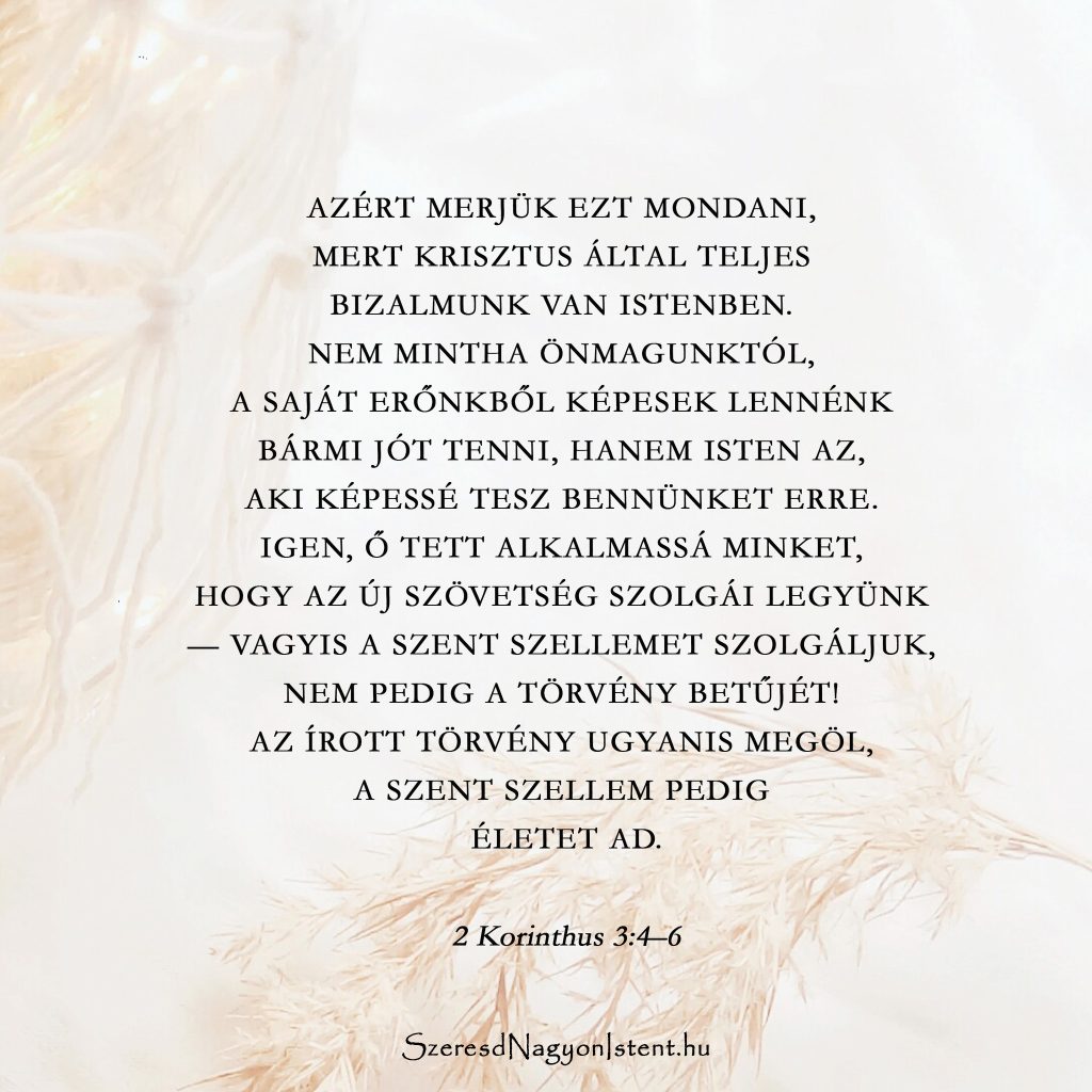 Milyen módon vált az életed a „törvény követőjévé”? Van olyan területe az életednek, ahol már inkább szőrszálhasogatóként gondolkozol? Ezen a héten gondolkodj el azon, hogyan mutatja meg Isten tetteidtől függetlenül az irántad való hűségét! Miképpen léphetsz előre, és hagyhatsz fel a jog-, vagy munkaalapú mentalitással az életedben és az Istennel való kapcsolatodban?