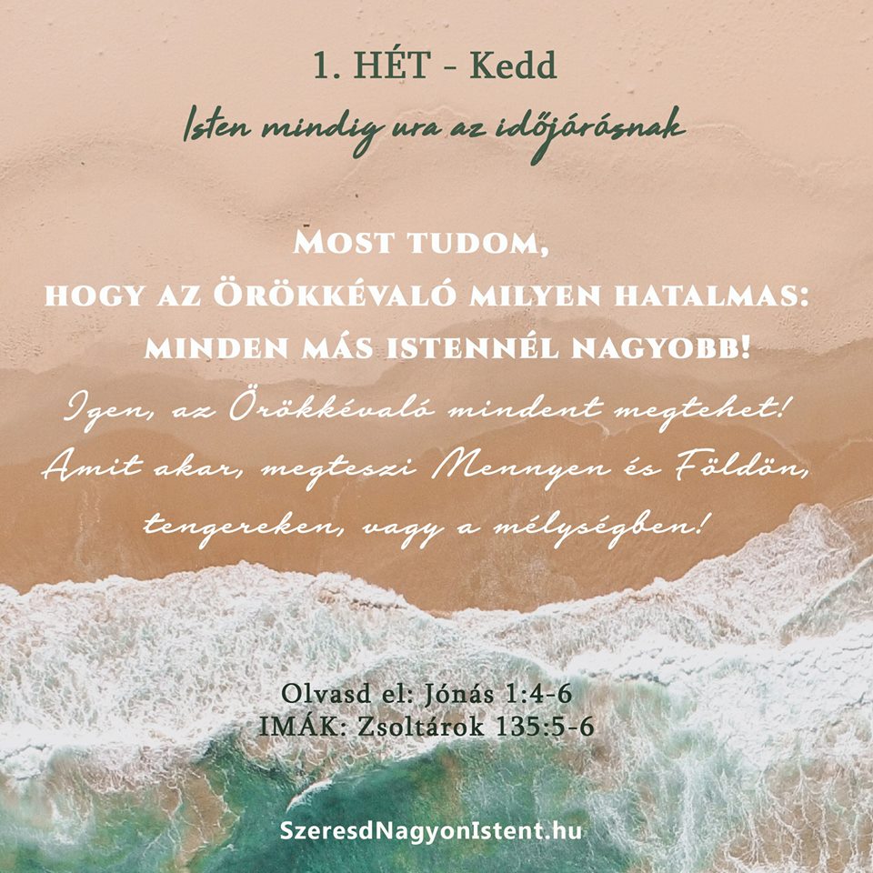 Isten mindig ura az időjárásnak Olvasd el: Jónás 1:4-6 IMÁK: Zsoltárok 135:5-6 Amikor a matrózok látták, mennyire tajtékzik a tenger, és mekkora veszélyben van a hajójuk, mindannyian a saját isteneikhez kiáltottak. A gond csak annyi volt, hogy egyik isten sem tudott rajtuk segíteni. Az egyetlen, aki belenyúlhatott a helyzetbe, Isten volt, a világmindenség Teremtője, a […]