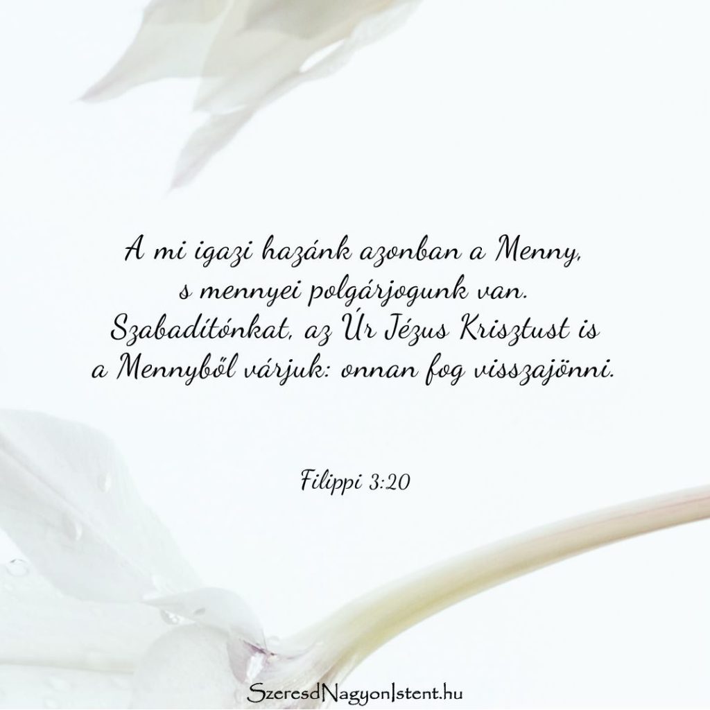 3. heti kihívás: Ezen a héten gondold végig, mit jelent az, hogy a Menny polgárai vagyunk! Az, hogy oda tartozol, milyen hatással van arra, ahol most élsz és dolgozol a Földön? Az, hogy tudhatod, Krisztusban örök lakozásod van a Mennyben, hogyan befolyásolja az életedet ma?