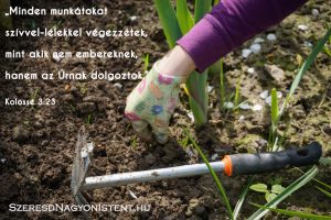 Az én imám a mai napra az, hogy remélem, azok a szavak, melyeket az Ő Igéjéből tanultatok, most kilépnek a lapok közül a kerteteken végzett munka által, hogy táplálni tudjunk másokat Isten igazságának gyümölcsével!